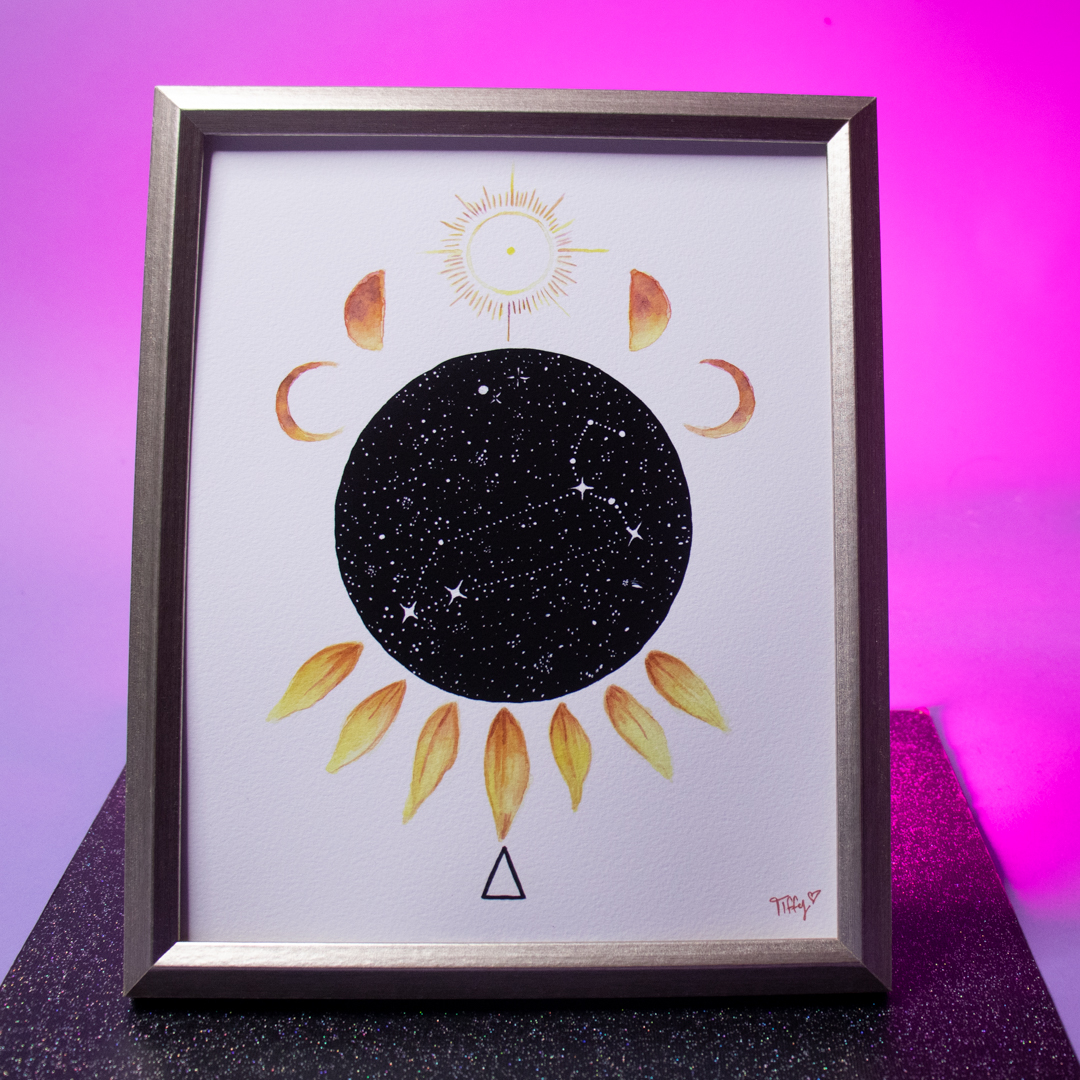 This gorgeous watercolor art print is based on the astrological sign Leo and was painted by Tiffy.